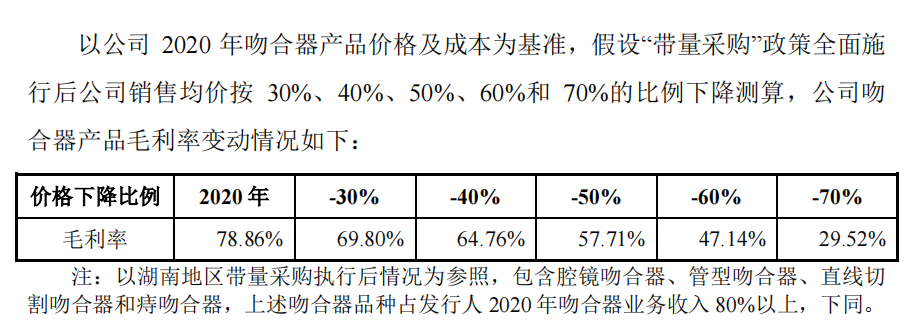 东星医疗也在招股书中预测了其吻合器产品的毛利率变动情况: