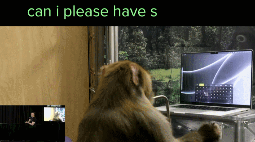 “一开始还是虚拟键盘。现在我们已经可以直接用脑机界面来读取信号,结合画面中的图形,和训练得到的信号模式,来精准地判断猴子在屏幕上写的是什么字”,一位 Neuralink 技术专家透露。