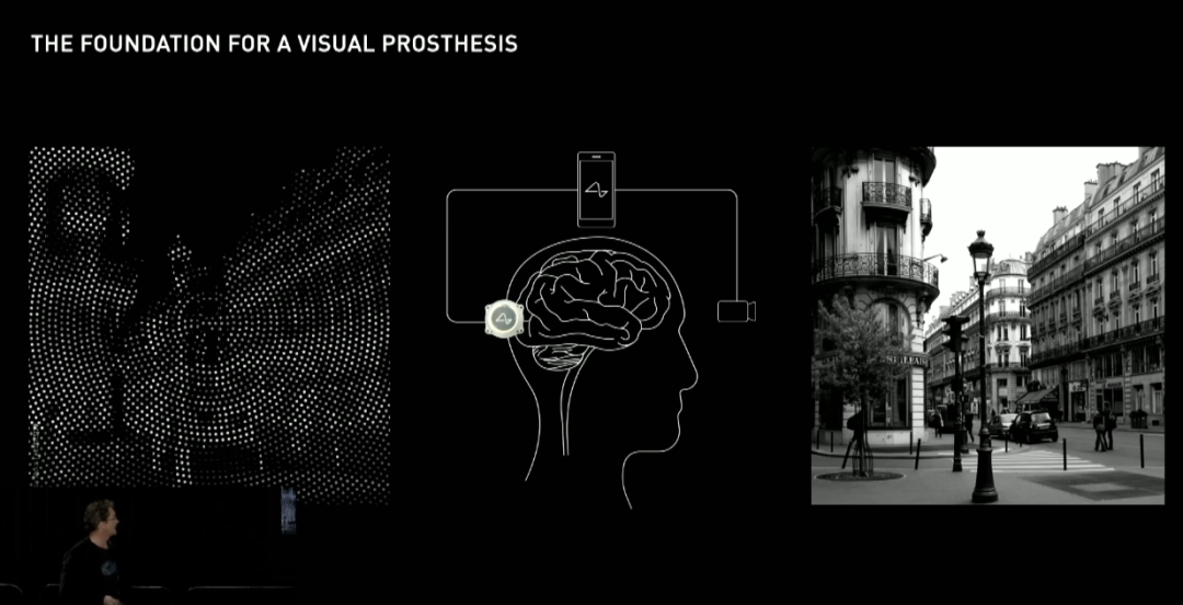 而另一个阶段性目标,则是视觉义体:通过外部设备+脑机接口的方式,帮助那些一直生活在黑暗中的视障人士,重获光明。