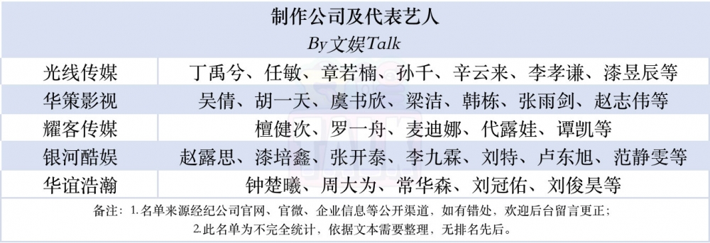 演员储备方面,实力派演员尹正、齐溪、张颂文在手;还签约了不少新人,包括选秀出生的赵小棠、孔雪儿等人,虽能一定程度扛起偶像剧和其他赚钱门路,但无论是演技、戏路、还是综艺感尚在成长阶段,距离独当一面道阻且长。