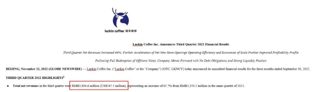 瑞幸2022年第三季度财报