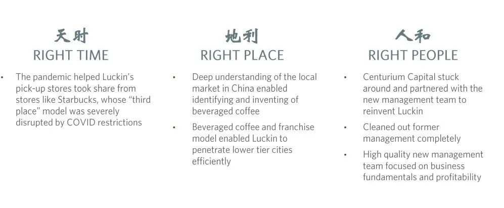 如此困境之下,瑞幸只花了两年就取得现在的成绩肯定是做对了一些什么的,就像雪湖资本研报里概括的那样,“天时地利人和”。