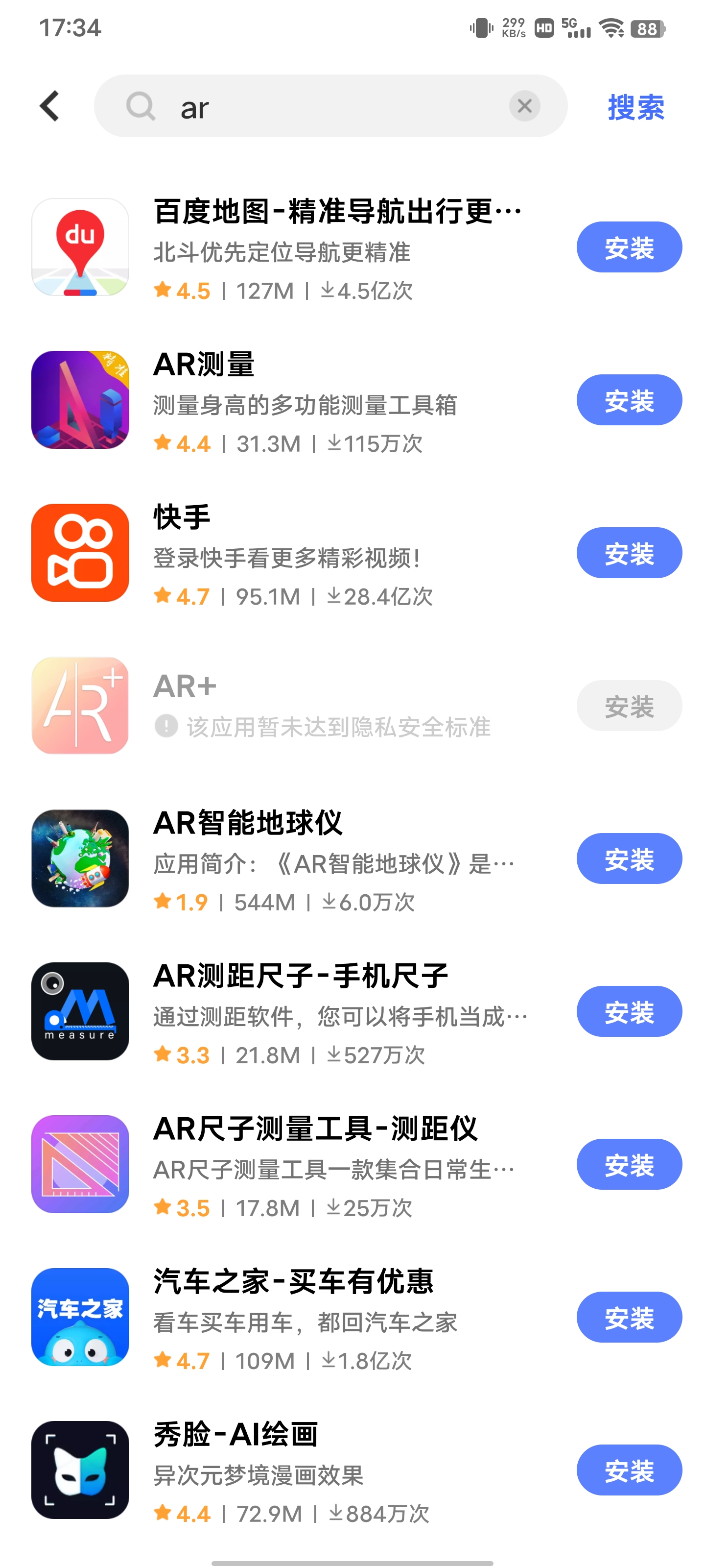AR头显能够使用的App,大多也是通过手机下载,与眼镜有线、无线连接使用,无法做到独立运行。可是国内手机应用商店,根本搜不到与AR眼镜相关的应用,搜出来的App,基本都是利用手机摄像头,实现一些AR功能。