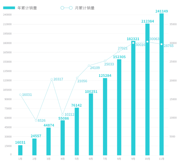国内新能源汽车龙头比亚迪,11月销量达到23万辆,环比10月份增长6%,本年累计销量超过160万辆。