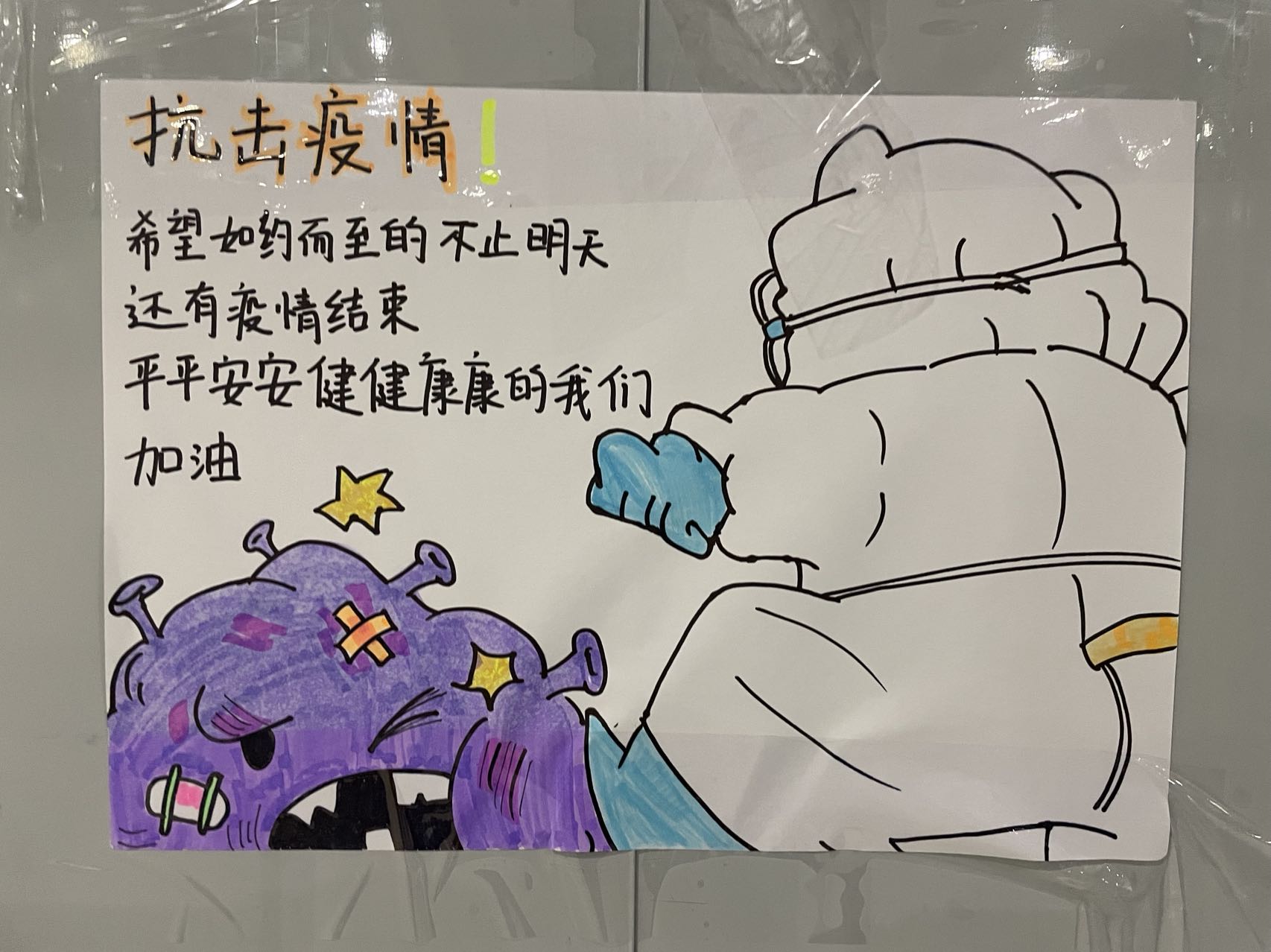 ▲方舱内的贴画(受访者供图)