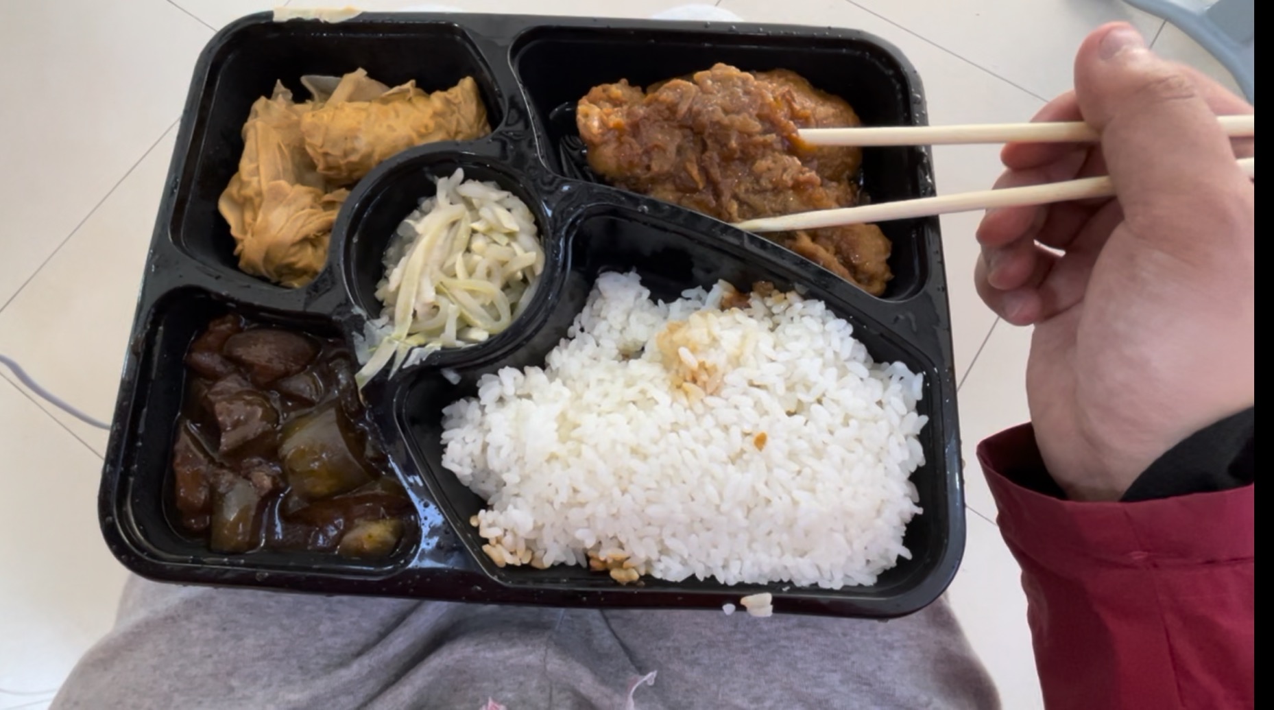 ▲方舱中的首日晚饭(受访者供图)