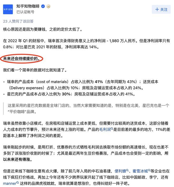 知乎“瑞幸咖啡为何越喝越贵?”的话题下,高赞回答提到:“烧钱、价格战、垄断竞争……都是中国企业这几年的通病。”