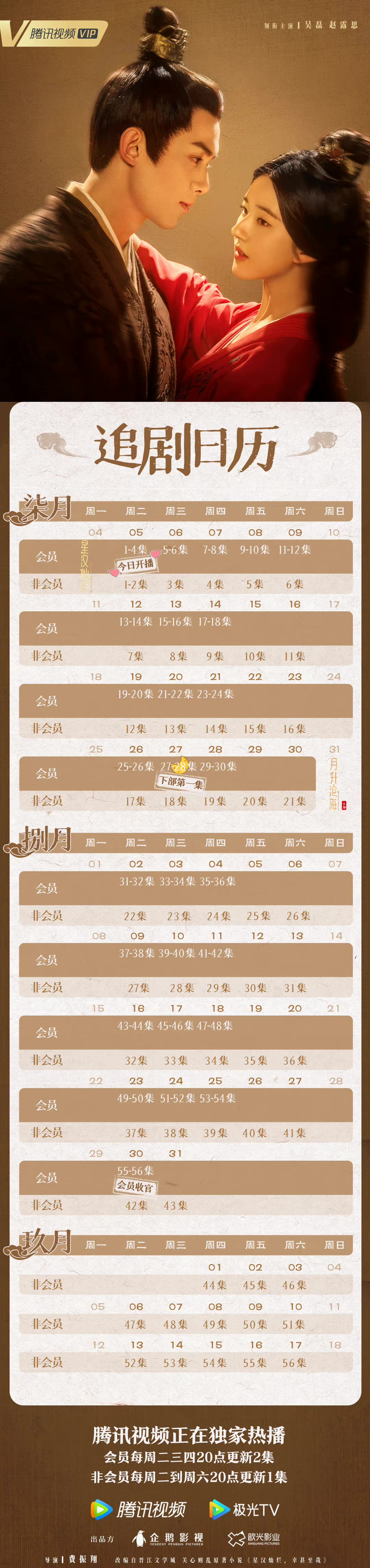 首更4-6集,随后“播四停三”或“播三停四”,是目前视频平台最为常见的排播方式。所有剧集都会按照会员与非会员来划分更新的周期。各种花式追剧日历,没点经验都无法一眼看明白。