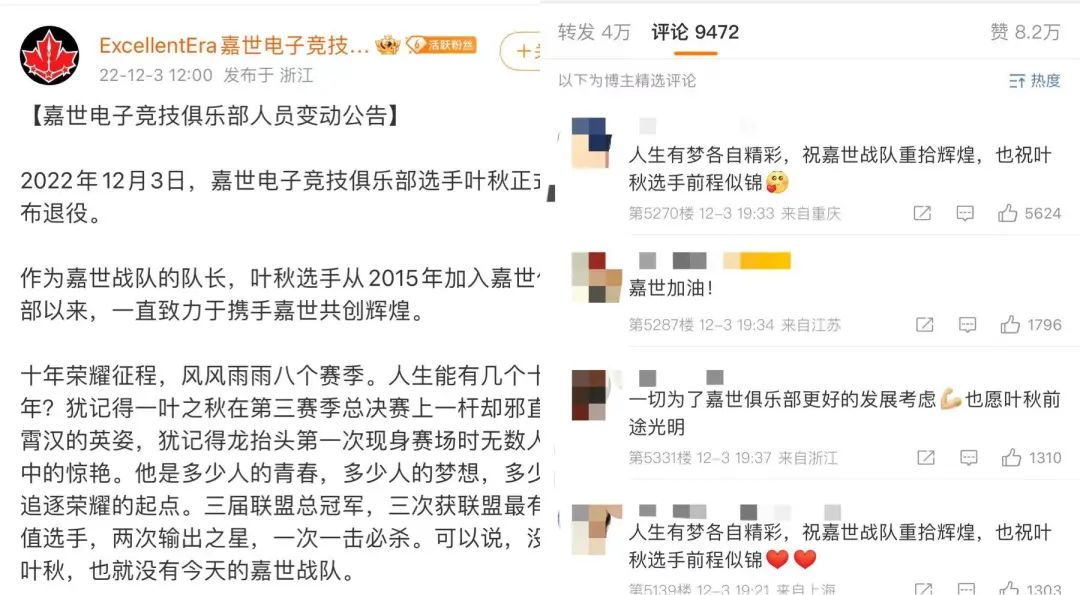 “嘉世电子竞技俱乐部”那条宣布叶秋的微博收获了4万转发,因为看过小说的网友都知道叶修是被迫从嘉世退役,所以最初的微博评论里骂声一片,而虚构出的嘉世官博还十分细节地开启了精选评论。