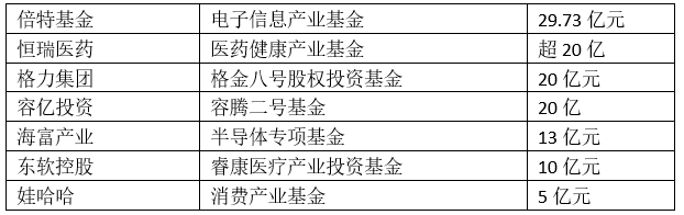 另据同花顺数据显示,今年以来,沪深两市288家上市公司参设产业并购基金,基金数合计达296只,按照计划募集总额超过2400亿元。而多家国内知名VC/PE也参与到上市公司设立的产业基金。其中,来自消费赛道的食品饮料、服饰的为14家。