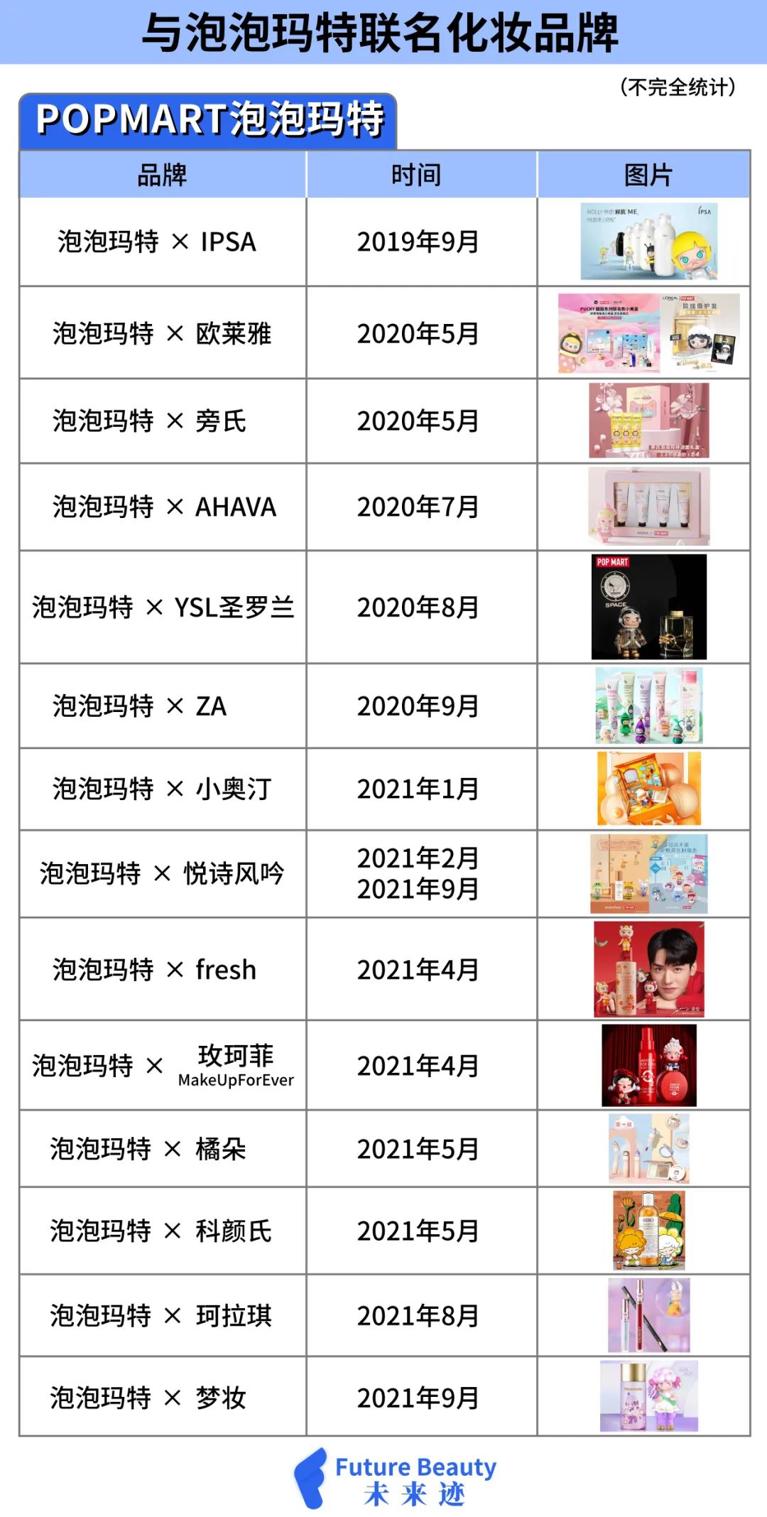 泡泡玛特与美妆品牌联名统计