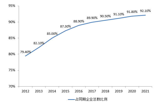 图5:民营企业在企业总量中的占比变化,资料来源:市场监管总局