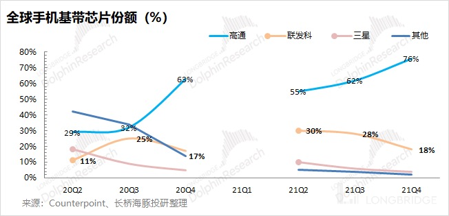 从 4G 手机逐渐进入 5G 时代,手机上对于基带的采购有更高的需求,也带来了更高的价值量。5G 的普及和苹果采购协议的签订,让公司的份额重回全球第一。