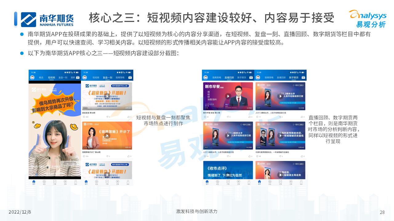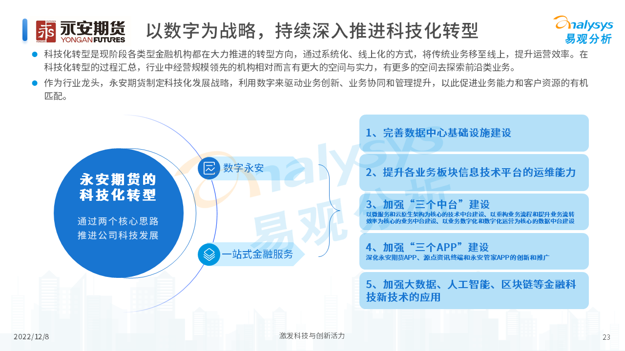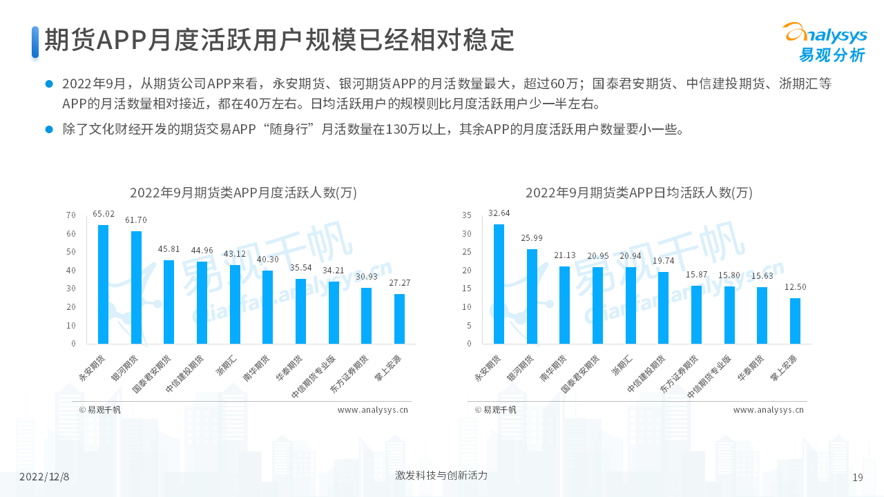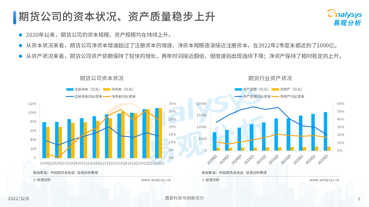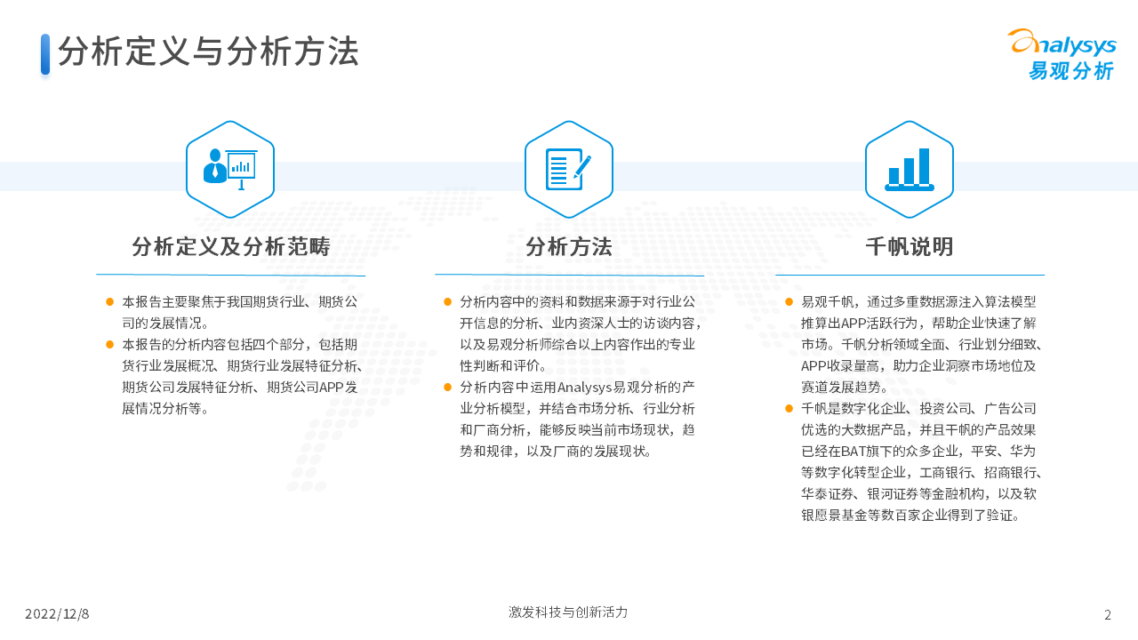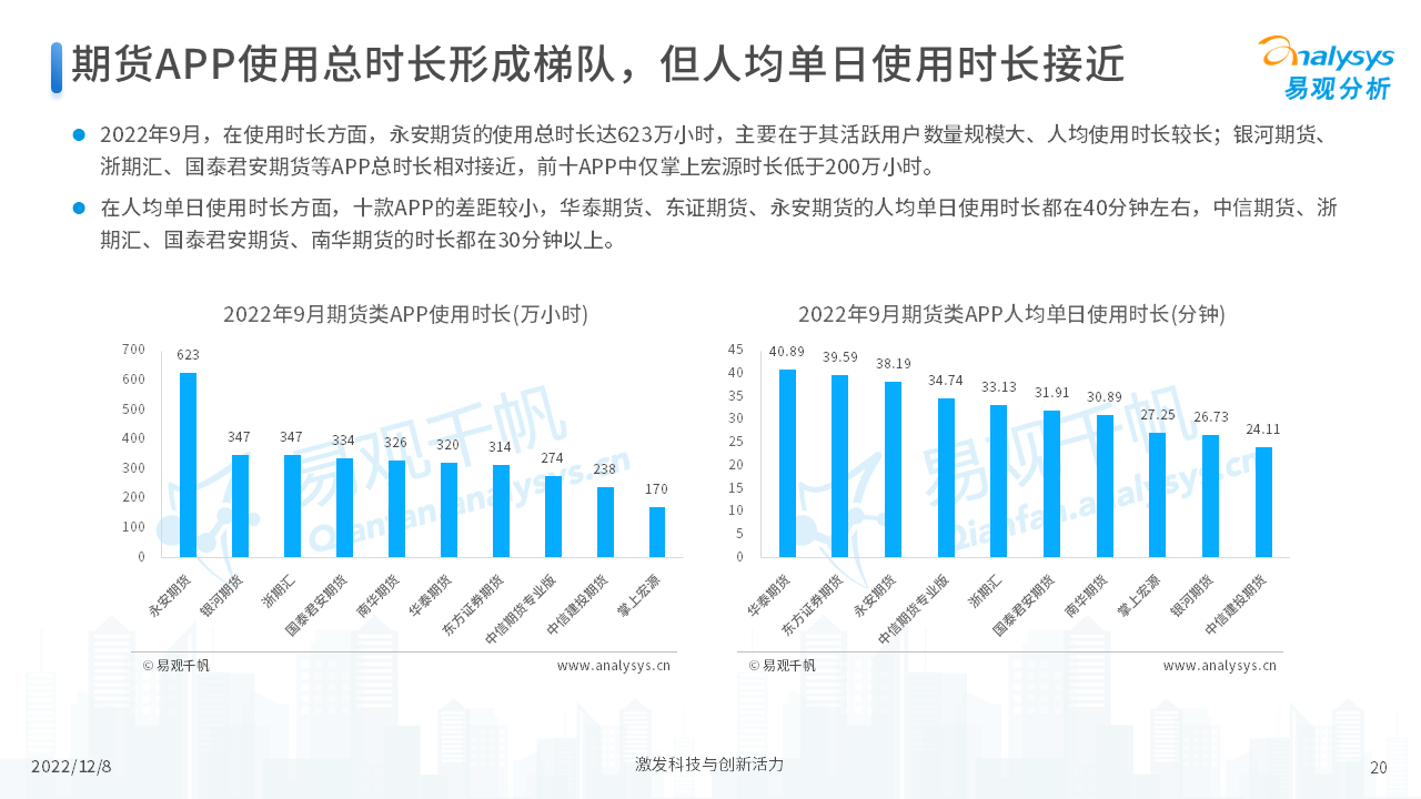 报告从期货行业发展概况、发展特征、期货公司科技化转型,以及行业未来发展趋势等四个维度,对当前期货行业进行了分析。我们认为,在传统网店营业模式的基础上,更多的期货公司会通过APP的形式来拓展业务,让服务更贴近客户、让营销更有的放矢。