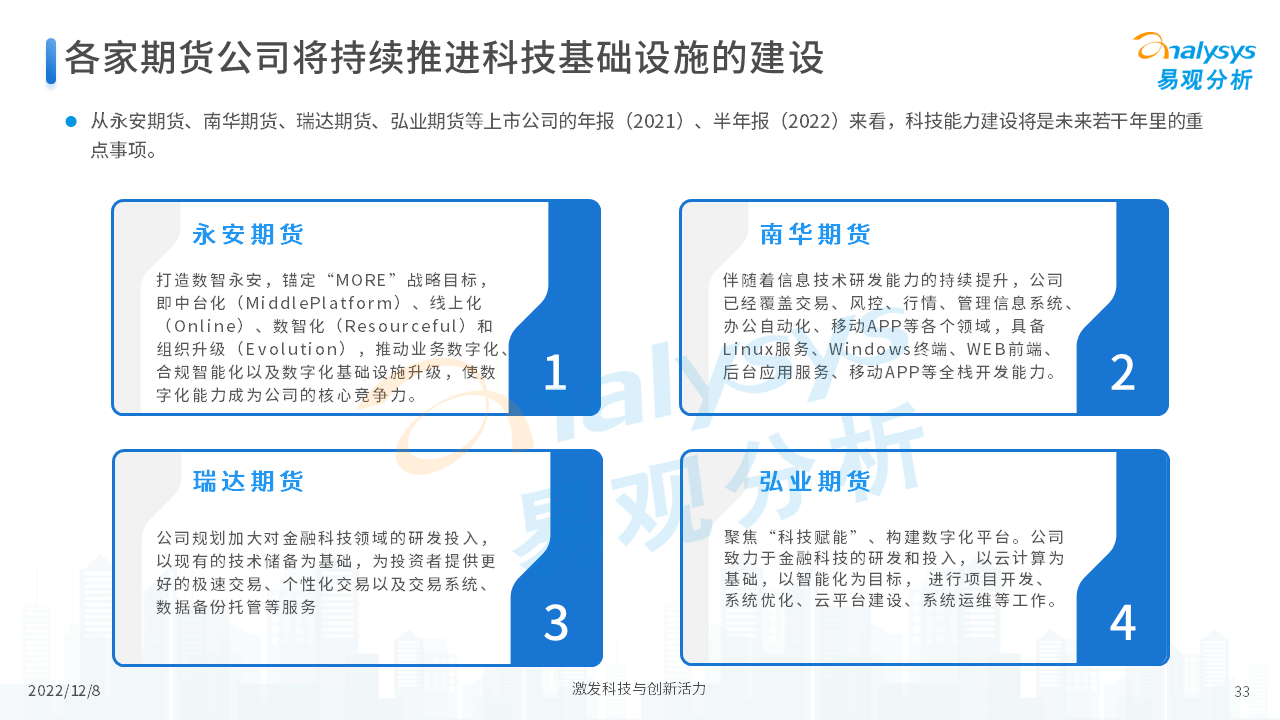 近年,期货行业迎来了高速发展,行业规模、公司业务体量、投资者数量等方面都有了明显的提升。另一方面,期货公司为了更好的服务客户,近两年不断加大科技建设的投入力度,以强化科技化水平、提升未来竞争力。