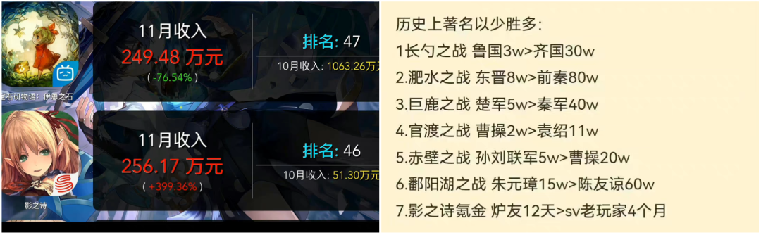 所以,寻找“新欢”成了无可奈何的选择。《原神》并非唯一选项,有B站up主整理了11月ios平台上主流卡牌游戏下载量和流水的变化,可以明显看到在17日网易暴雪公布“分手”消息之后,自18日起包括《阴阳师:百闻牌》《影之诗》《游戏王:决斗链接》在内的游戏数据均获得了巨大的提升。