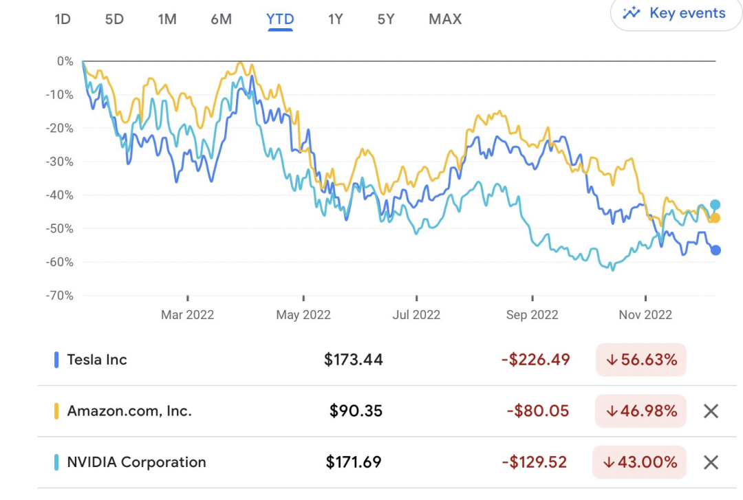 没错,特斯拉的股价表现,与今年的美国科技大盘趋势一致。不过,这也反映了一个事实,特斯拉不再是成长股模范生,与之相比,今年苹果的股价跌幅是19%。