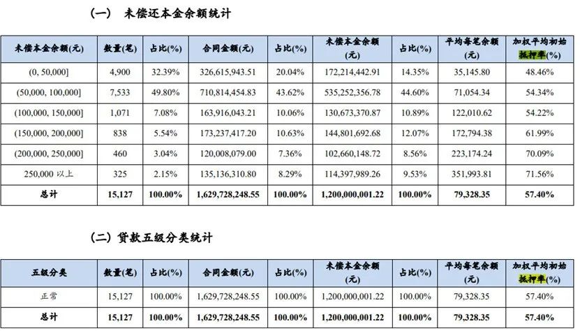 备注:*初始贷款价值比(LTV)= 初始起算日贷款未偿本金余额/抵押物初始评估价值;*发放贷款价值比(LTV)= 初始起算日贷款合同本金/抵押物初始评估价值