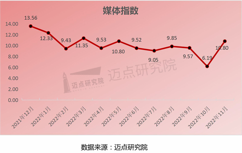 从媒体指数均值来看,本月整体酒店品牌的媒体指数均值为10.80,环比上升幅度较大,为74.47%,媒体重点关注卡塔尔世界杯酒店、品牌酒店签约、酒店拍卖交易等。从酒店品牌媒体表现来看,锦江酒店、亚朵酒店、洲际酒店、维也纳酒店、假日酒店、汉庭酒店、Club Med、万豪酒店、君亭酒店和希尔顿酒店位列前十,环比提升最快的前十酒店分别为星程酒店、citizenM酒店、天港禧悦酒店、万信至格酒店、安纳塔拉度假酒店、臻品之选酒店、嘉佩乐酒店、宜必思酒店、姑苏小院和柏曼酒店。