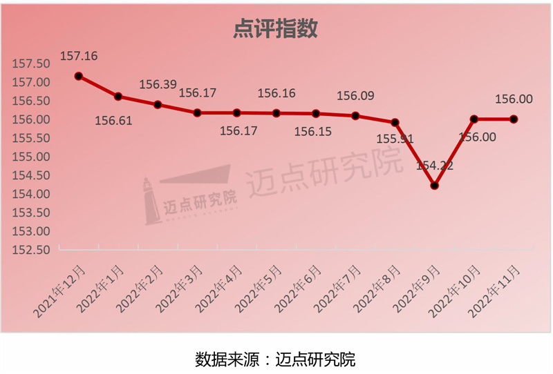 据迈点研究院数据显示,2022年11月酒店主题数量分布中,商务酒店占比最多,多达142个;潮牌酒店占比最少,仅有13个。品牌指数均值来看,商务酒店、个性化酒店和潮牌酒店位列前三;电竞酒店品牌指数均值最低,为148.76,其品牌处于市场培育期,相对小众。从品牌指数的环比变化来看,环比上升约占七成,其中个性化酒店上升幅度最大,为6.67%;轻奢酒店下降幅度最大,为-1.58%。