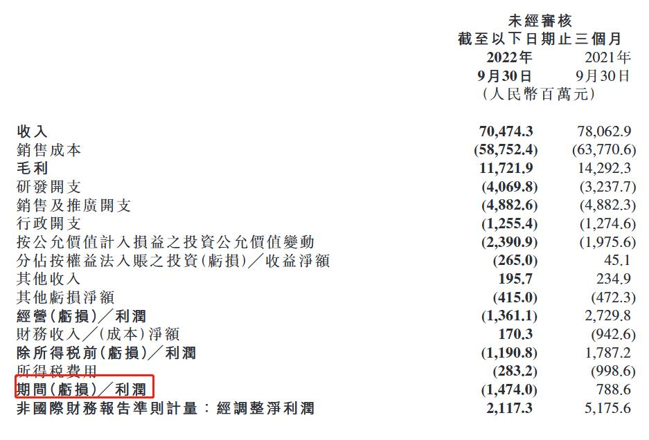 不只是营收规模,小米在盈利上的表现同样不容乐观。今年三季度小米亏了14.7亿元,根据金十数据的计算,每卖出一部手机,小米就要赔上22元。