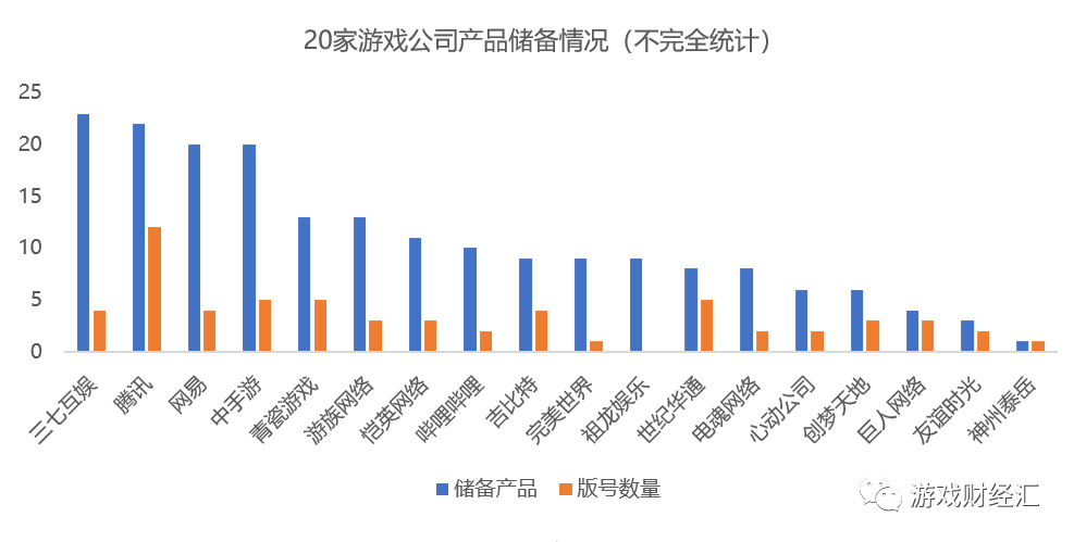 游戏财经汇选取了20家A股及港股的游戏公司,统计了上述公司的版号储备情况。