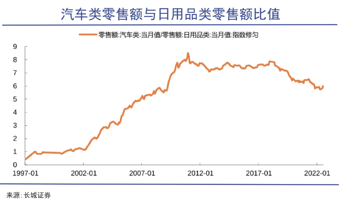 中国所面临的“后地产时代”的实际情况,让消费降级现象早已出现。长城证券的数据显示,自2018年起,汽车类零售额与日用品类零售额的比值开始下降,这一定程度折射可选消费与必需消费的比值下降,也说明了中国存在部分消费降级的现象。