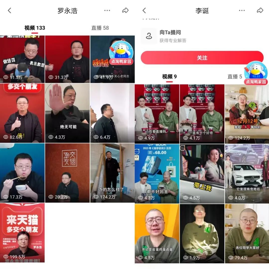 不过,与初入淘的罗永浩来说,可能还有些许距离。以李诞和罗永浩最初发布的视频作品来看,罗永浩的表现明显更佳,如李诞的首条视频播放量为79.4万,罗永浩则为199.5万。新入场者李诞的火候或许还得再加加。