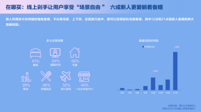 根据《婚礼纪2021年结婚人群需求调研》显示,90、95后年轻人反感婚礼中的繁琐流程、形式主义、摆拍和煽情,希望享受结婚过程中的幸福体验,获得被认可的情感满足。