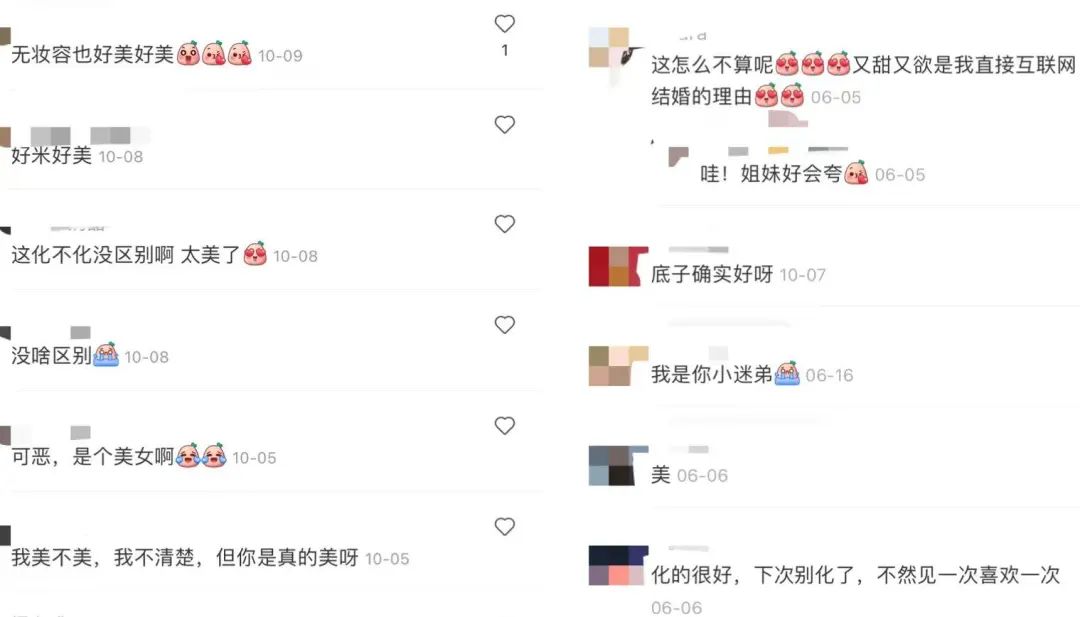 在不少女性用户贴出的照片下,很难看到在其他社区常见的对“是否P图”的质疑,亦或者“妆后是否能代表真实颜值”的讨论。只要照片最终呈现出的效果是“美”的,就一定会受到评论区大量的夸奖。且这种夸奖超出了很多男性用户惯有的“女性善妒”的认知,展现出了一种其乐融融的和谐场面。