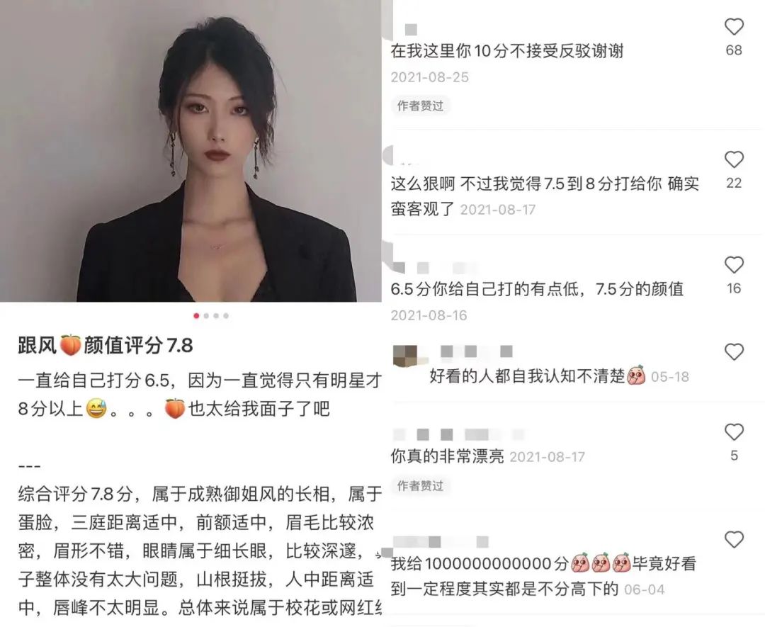 虽然给自己打分6.5,但是只给评论区中“10分”“你很漂亮”的夸奖点赞