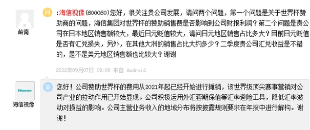 在投资者互动平台,有投资者同样提出类似的疑问,海信视像回应称,其赞助世界杯的费用从2021年起开始进行摊销,世界杯的营销效果已经对海信的拉动开始显现。
