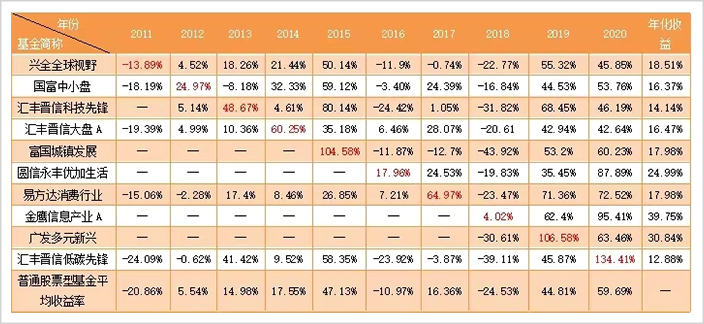 《每日经济新闻》曾对2011-2020这十年的股票型公募基金做过统计,结论是:夺冠之后第二年,相关基金普遍跑输行业平均收益率。