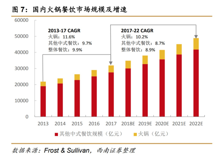 更何况对于纯业绩导向的加盟商来说,西式餐饮早就不是什么增量市场了,火锅、泰餐、小吃集合点已经拿出了更有说服力的数据。一份来自于Frost & Sullivan显示,在疫情之后的中国餐饮市场里,火锅不仅占据的中餐市场的最大份额,整体增速更领先于其他餐饮品类,“火锅品类的坪效也的确是高于其他正餐或者快餐小吃的,且品类的毛利率高达55-60%,净利率10-15%,远超行业平均。”