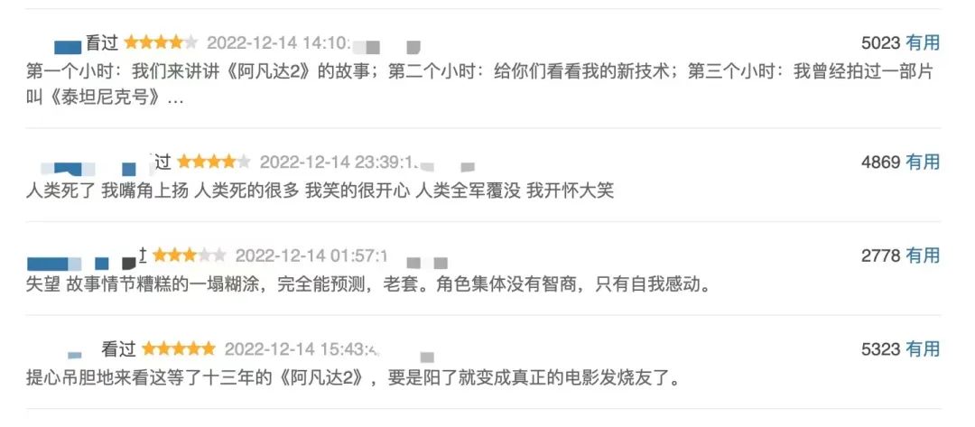 这其中当然有疫情和票价高等客观因素存在,阻碍着一部分有潜在观影意愿的观众。但需要正视的问题是,《阿凡达:水之道》的确没有从业者预期的那般受欢迎。