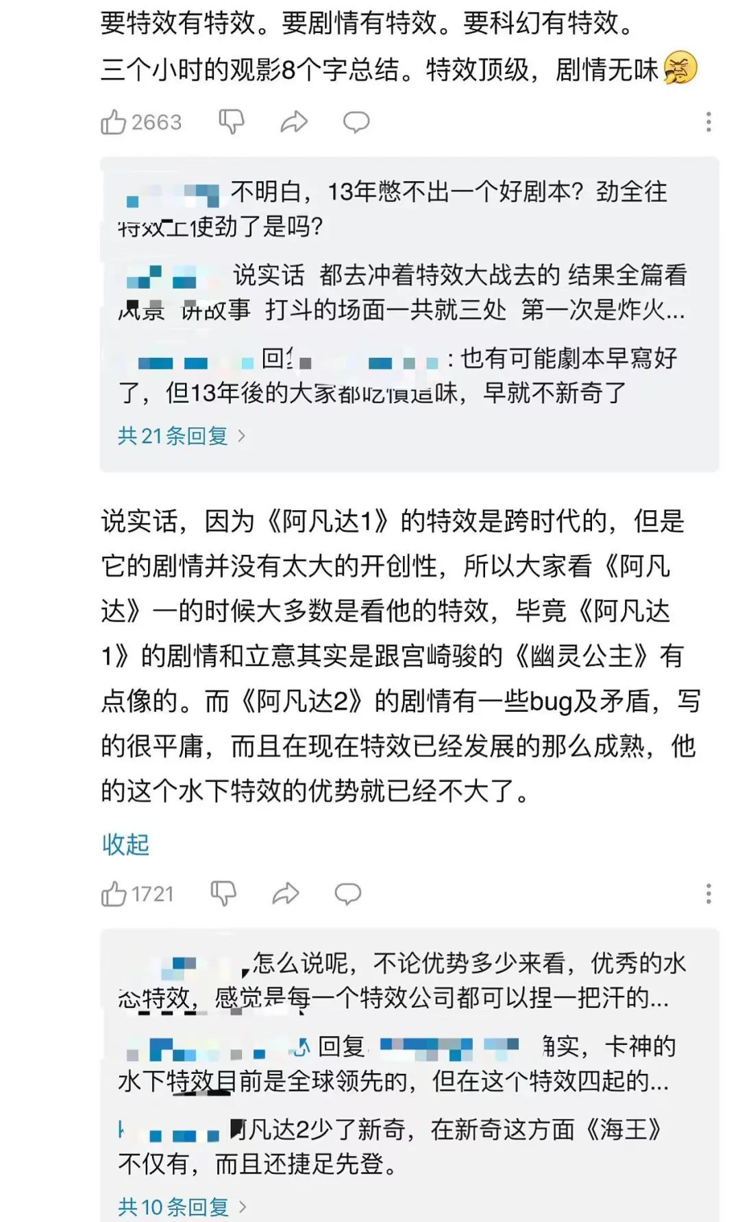 《阿凡达:水之道》也难逃例外,即便已经在技术层面达到了顶配,也没有落下表达情感的初心,但流于俗套的剧情,仍成为最大原罪。搭配上前作注定带来的高期待,和罕见的高票价,更进一步强化了“不值得一看”的情绪。