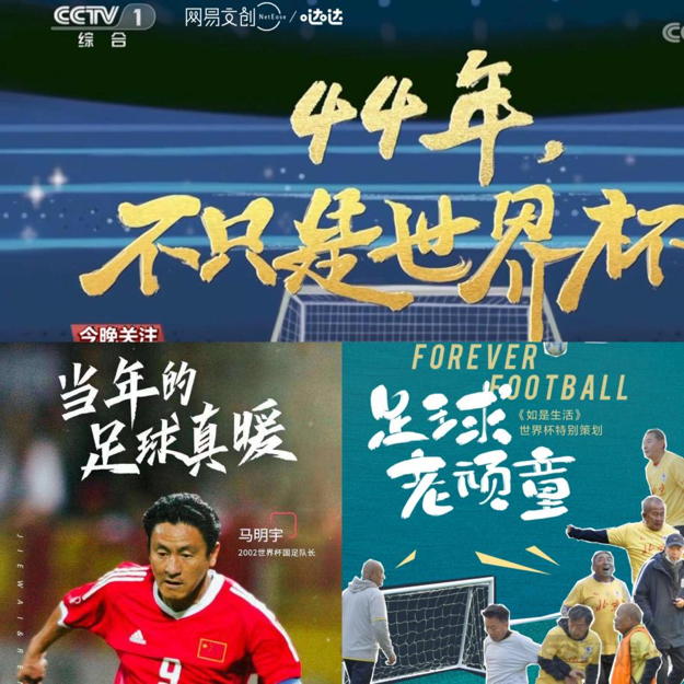 世界杯不仅是球迷的狂欢,更是人类所有情感的总和。网易文创旗下IP“网易哒哒”携手央视新闻共创视频《中国人与世界杯44年》,以“动画+实景”的方式,回味这些年普通人的世界杯观赛历史,引爆集体回忆,视频在CCTV-1晚间黄金时间段大屏播出,获中国青年报、参考消息、环球资讯、人民日报评论等上百家媒体跟进报道,全网曝光超4000万。网易文创《如是生活》推出世界杯特别策划纪录片《足球老顽童》,讲述了在北京天坛体育中心,一群平均年龄近60岁、热爱了足球一辈子的老顽童群像。网易文创谈心社x网易体育《界外》推出2002世界杯国足队长马明宇专访视频《当年的足球真暖》,畅聊国足的世界杯回忆,分享这些年来马明宇的足球故事。