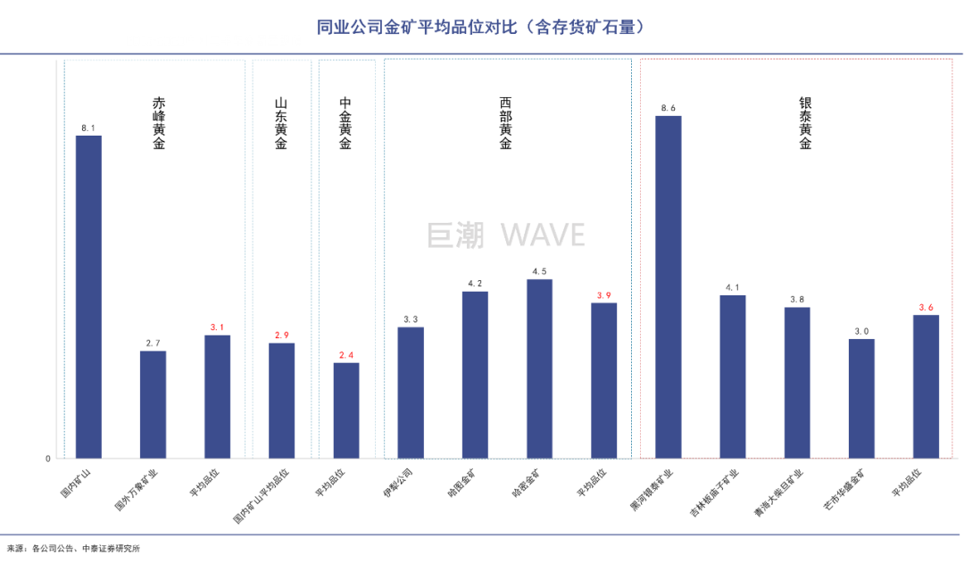 2021年,银泰黄金合质金产量为7.2吨, 仅排在同行业上市公司中的第五位,但其矿产品位高,利润好。银泰黄金整体矿山平均品位为3.6克/吨,仅略微次于西部黄金,旗下黑河银泰金矿平均品位高达8.6克/吨,是行业中的最高水平。