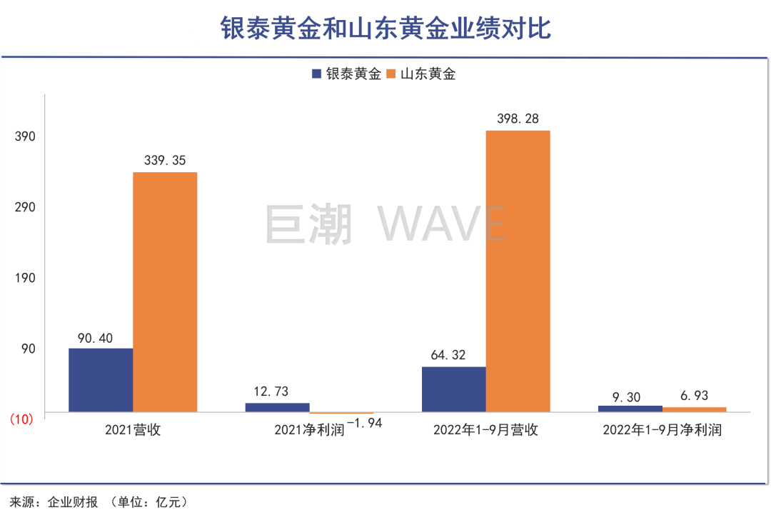 今年前九月,银泰黄金以不足山东黄金1/6的营收规模,创造了后者1/3的净利润,两者的盈利能力堪称天壤之别。