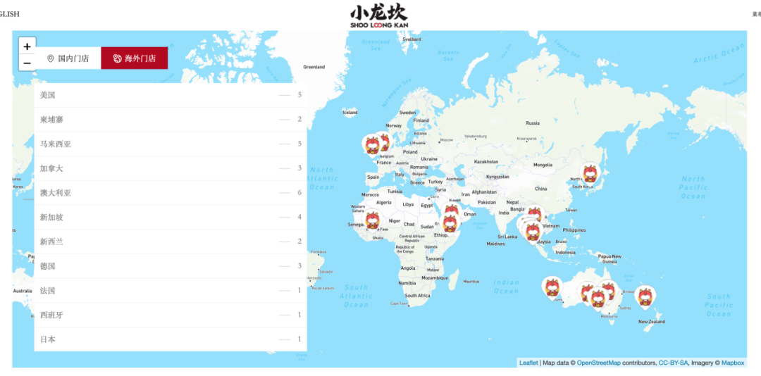 成都的小龙坎也是近年来的火锅出海新秀,其主要阵地在北美和马来西亚。口味上,小龙坎推崇正宗四川牛油火锅,食材上也保留了四川特色。小龙坎官网显示,目前其在全球已经拥有了33家海外门店。