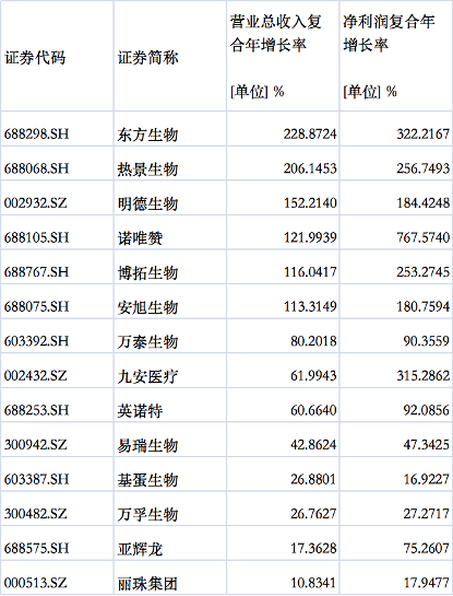 Wind数据显示,2018-2021年,东方生物营收复合增长率达228.87%,净利润复合增长率达322.22%,在14家抗原检测概念股中均处于领先地位。
