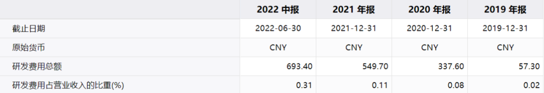在不少年轻人眼中,高溢价背后必须有足够的专业性、高品质支撑。从财务数据来看,这些年,卫龙在产品研发上有投入,但不多。招股书显示,2019-2022上半年,卫龙的研发投入分别为57.3万、337.6万、549.7万和693.4万,仅占总收入的0.3%左右。与此相反的,是每年水涨船高的营销费用。