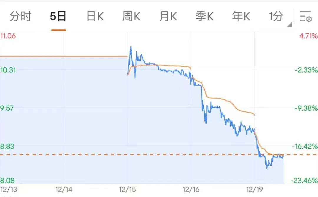 随着港股破发常态化,卫龙也不意外地破发了。截至上市首日收盘,股价报10.02港元/股,相较发行价下跌5.11%,对应市值235.6亿港元(折合人民币211.0亿元)。至12月16日上市第二天,卫龙股价在上市首日跌5%的基础上继续下跌,未能摆脱破发的走势。