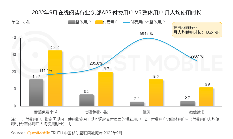 5、免费模式下,用户更习惯于连续性阅读,故粘性更高;作为以付费订阅为主的掌阅,其付费用户使用时长超出整体的6倍,可见付费订阅模式,用户的阅读更有针对性