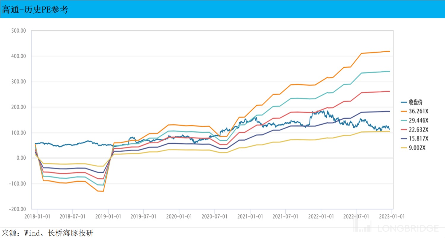 参考高通历史 PE 来看,9-15 倍 PE 已经是位于公司历史中枢以下。以 9-15 倍 PE 作为参考,高通 2023 年财年利润对于的估值为 1062-1770 亿美元,折合股价 95-158 美元/股。当前股价 112 美元也位于区间偏低的位置。