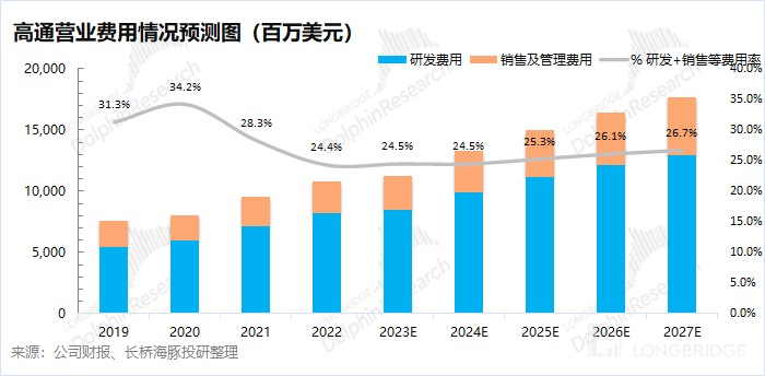 鉴于行业和公司经营面的压力,公司总裁 Amon 先生在上季报交流会中,也提到了,“公司将采取招聘冻结等措施,并准备根据需要进一步削减运营费用”。因此,海豚君在对接下来的营业费用的预测中,也有所减少。而随着市场的回暖,公司的费用开支项才可能重回扩张。