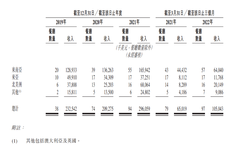 特海国际的布局也十分迅速。招股书显示,2019年特海国际仅拥有38家门店,这一数量目前是103家,覆盖新加坡、日本、美国、澳大利亚等11个国家。