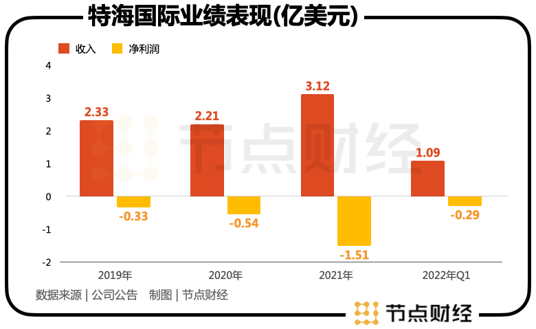 特海国际的财务状态与海底捞类似。近几年因为扩张,营收高速增长,但尚未盈利。招股书显示2019年-2021年及2022年上半年,特海国际实现营收分别为2.33亿美元、2.21 亿美元、3.12亿美元、1.09亿美元,期间净利润合计亏损超2.64亿美元。