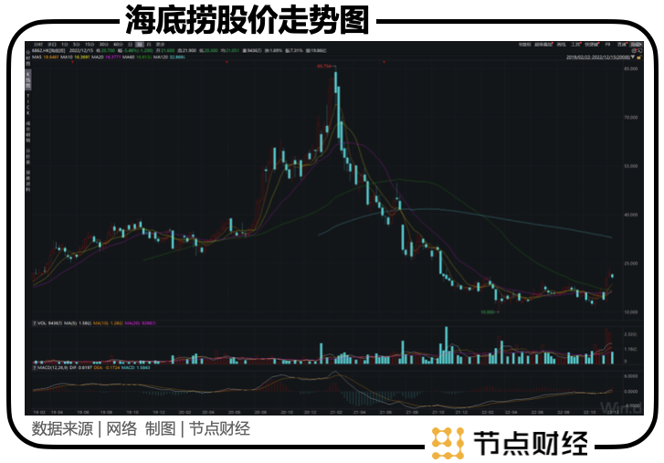 此时,海底捞已将前期积累的所有涨幅吞噬干净,股价最低于今年3月份跌破10港元/股。