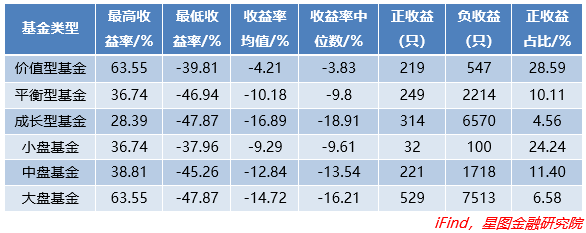 基金风格方面,从整体收益率来看,小盘风格基金表现优于中盘、大盘风格基金;价值风格基金表现优于平衡、成长风格基金。从收益的弹性来看略有不同,大盘风格基金表现优于小盘、中盘风格基金。